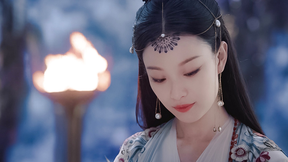 靈汐在凡間歷劫歸來、飛升上神,成為山靈國國主之後造型大升級,額頭上多了印花圖騰,再加上典雅的垂墜頭飾,新造型簡直美翻了,一開始大家還吐槽她的古裝,後來都被美顏征服了。