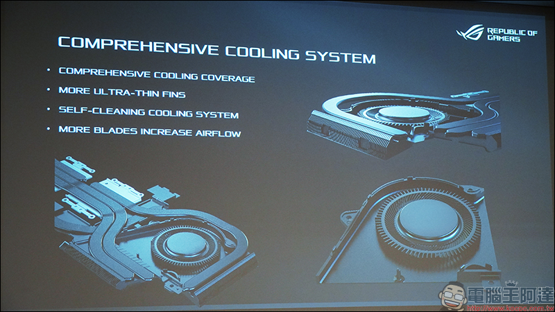 散熱方面, Zephyrus G14 依然配備 209 片扇葉的 12V 散熱風扇,搭配 5 根導熱管且支援 Anti-Dust :