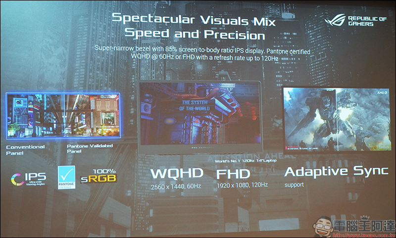螢幕方面, ROG Zephyrus G14 配備 14 吋 6.9mm 超窄側邊框、 85% 螢幕佔比螢幕:
