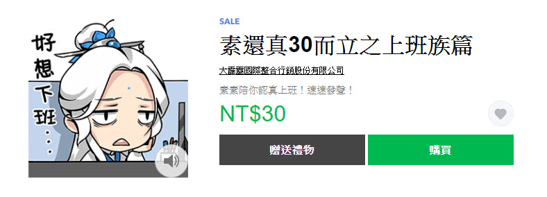 Line貼圖即日起推出「慰勞社畜們 指定貼圖5折」活動,包含「我是馬克」、「香蕉人」、「社畜時代」、「霹靂布袋戲」等10款,涵蓋有聲與可動等類型指定貼圖,全部5折通通為30元。