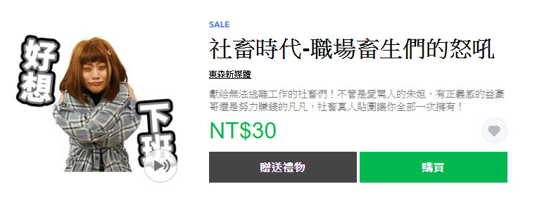 辦公室情境喜劇「社畜時代」則提供「社畜時代-職場畜生們的怒吼」有聲貼圖。