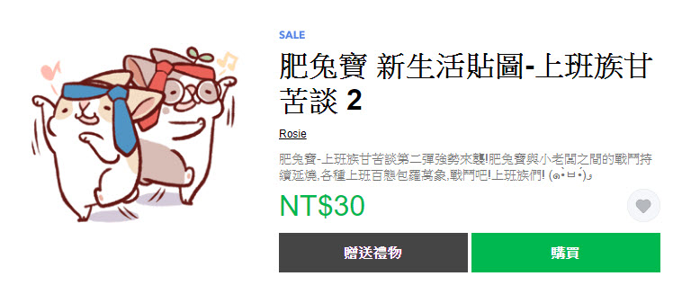 由rosie創作,以肥兔寶與小老闆之間的上班百態為主題,活動貼圖為「肥兔寶 新生活貼圖-上班族甘苦談 2」