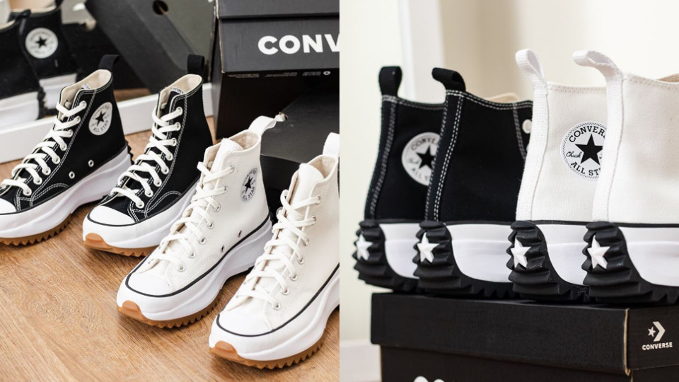 最近鞋款中討論度最高的「Converse Run Star Hike」全新黑白極簡版預計要在台灣發售啦!象徵性的「厚底、增高」設計讓女孩們為之瘋狂!增高除了完美修飾腿部身形比例,厚底的鋸齒狀加上擁有「Run Star」品牌標誌壓印,好精緻又可愛!
