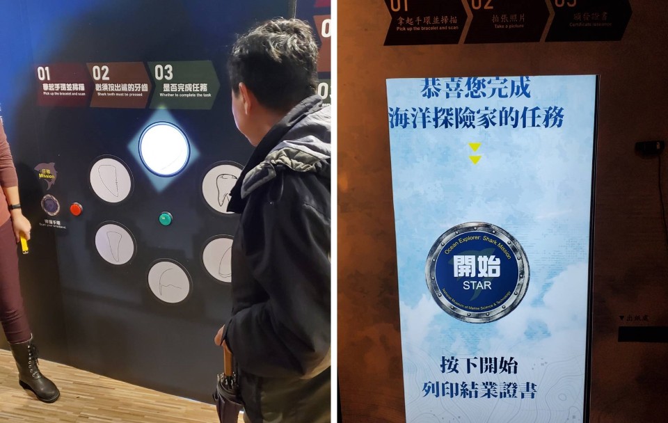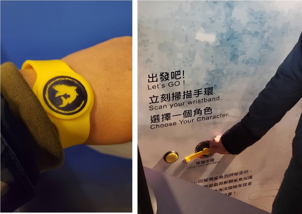 海科館說明,「追鯊任務.海洋探險家互動體驗展」,規劃有五大展區主題,分別為:「黑潮隧道」、「海洋基地」、「探索解謎」、「鯊魚學院」、「與鯊同行」等,入場後可以在特展服務台領取RFID手環,並且分別進入各探索區,包括「海洋基地」選擇角色;「探索解謎」區進行解謎遊戲;「鯊魚學院」進修學習更多鯊魚知識,並可看到活體鯊魚和鯊魚標本;「黑潮隧道」區探險;「與鯊同行」有互動AR遊戲區及遇見鯊魚Meet the sharks,民眾也可與AR中之海洋生物互動體驗,感受海洋生物優游於旁身歷其境之感覺。而所配戴的RFID手環會記錄參觀者解謎、闖關後的成績,到了最後通關後,可領取證書,是集結多元感受與體驗的特展。