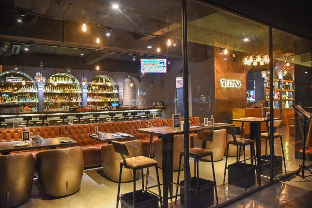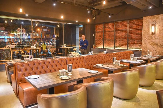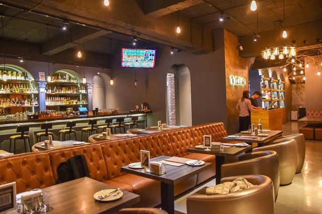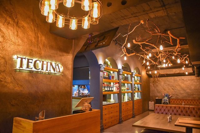 推開大門,鐵克諾餐酒館Techno W Bistro挑高的設計,帶有情調的氣氛燈飾,皮質沙發、還有擺滿各種酒品的拱門吧台區,讓人感受到不凡的高質感