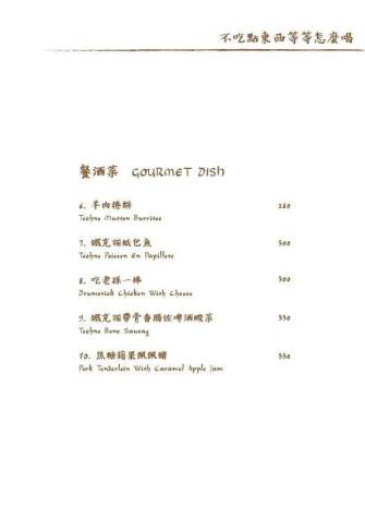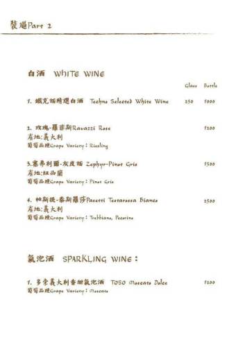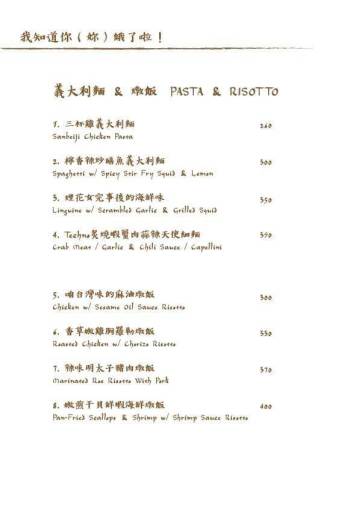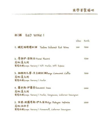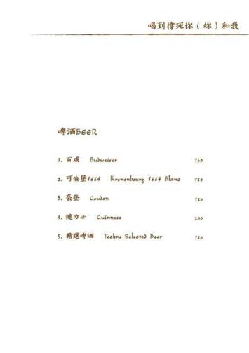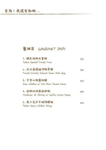 鐵克諾餐酒館Techno W Bistro的菜單分為一般菜單Menu與酒單Alcohol Menu兩種,非常專業!