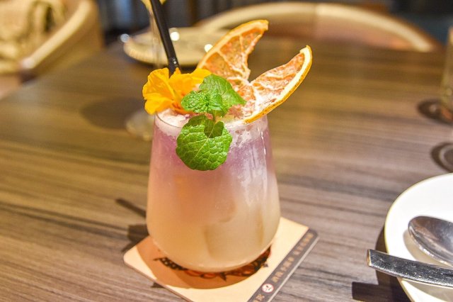 貴妃浴使用了荔枝、椰子及鳳梨去作調味,漂亮的紫色是使用蝶豆花,呈現出漂亮的漸層夢幻紫色~