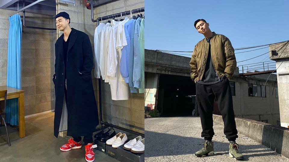 朴敘俊IG時尚5:街頭風,墨綠色外套+黑色運動褲