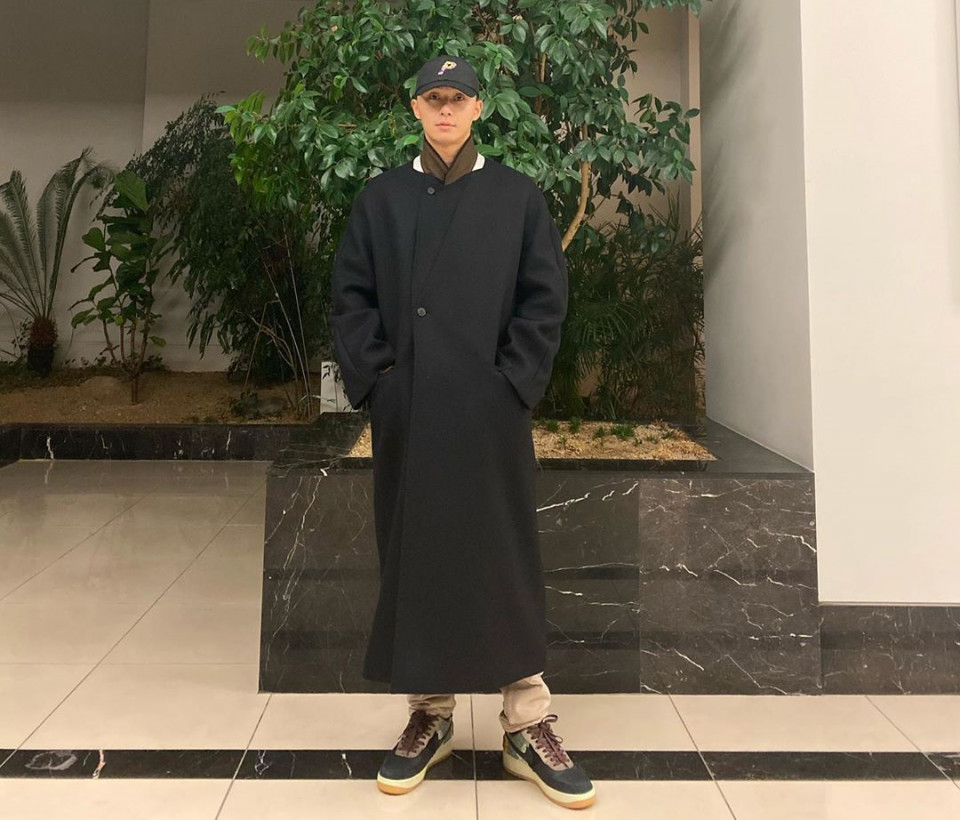 這套也是長到快接近腳踝的深米色大衣,朴敘俊一樣搭配黑色長褲和運動鞋,不過這一身如果不是像朴敘俊一樣夠瘦,這個顏色和設計,應該很容易顯得腫腫的。