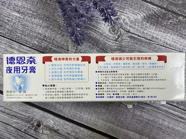 - 【牙膏推薦】德國原裝進口 德恩奈夜用牙膏 活力唾液,讓口腔更健康,是一款家庭必備的牙膏!