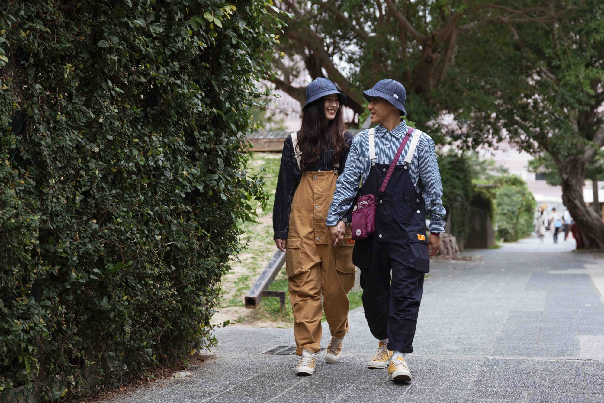拍攝當天看著 Andy 與 Nien 的穿著,跟情侶募集的照片,似乎感覺到有些不同,緊盯了幾秒鐘,我發現原來是吊帶褲不同了。Andy 跟 Nien 把吊帶褲交換穿了,這就是兩人穿搭的有去之處。漁夫帽、條紋襯衫、吊帶褲加上同款 Converse All Star,還有白襪,相似又在細節有著不同。