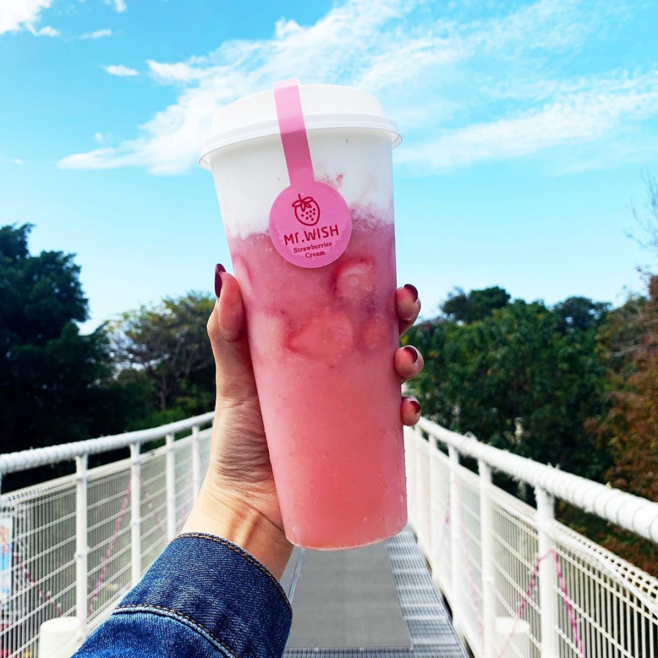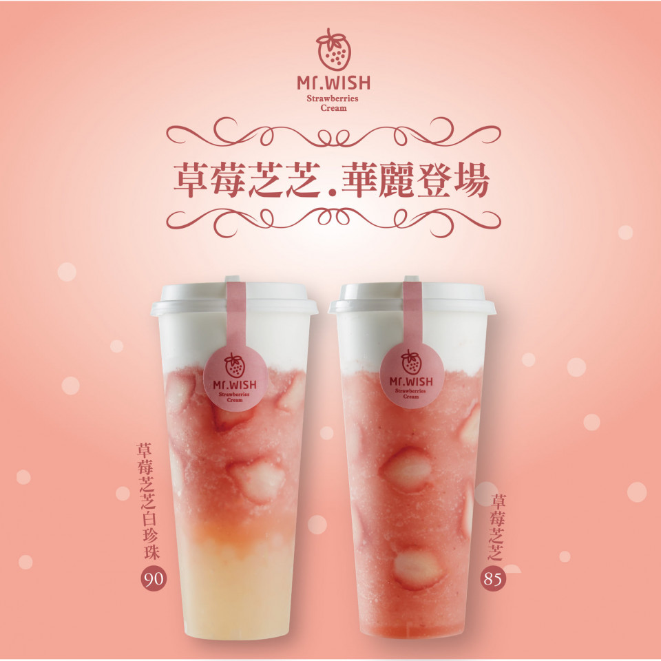 主打鮮果茶的連鎖飲料店Mr. Wish在草莓季也推出冬季限定草莓飲品「草莓芝芝」、「草莓芝芝白珍珠」!「草莓芝芝」使用草莓現打而成的冰沙,再加入幾顆新鮮草莓切片,最後鋪上一層芝士奶蓋,甜而不膩的口感,喝一口就超療癒,完全是為了草莓控量身打造!
