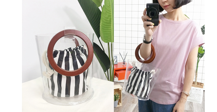 來自台灣的品牌也出了潮流感十足的透明包,比較貼心的是它特別設計了一個布質小包包在裡面,形成「包中包」的概念,讓女孩可以保有隱私,提把的地方特別加大設計,不用怕手太粗伸不進去拉(笑)。