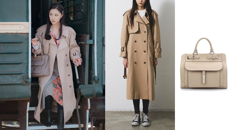 這一套是徐丹準備去見未婚夫時的穿搭~以滿版橘紅花設計風長裙搭配駝色風衣,中和了滿版紅花的浮誇,也中和了素色風衣的無聊感,讓人有眼睛一亮的感覺~加上和風衣同色系的手提包,增加整體穿搭的穩重感。