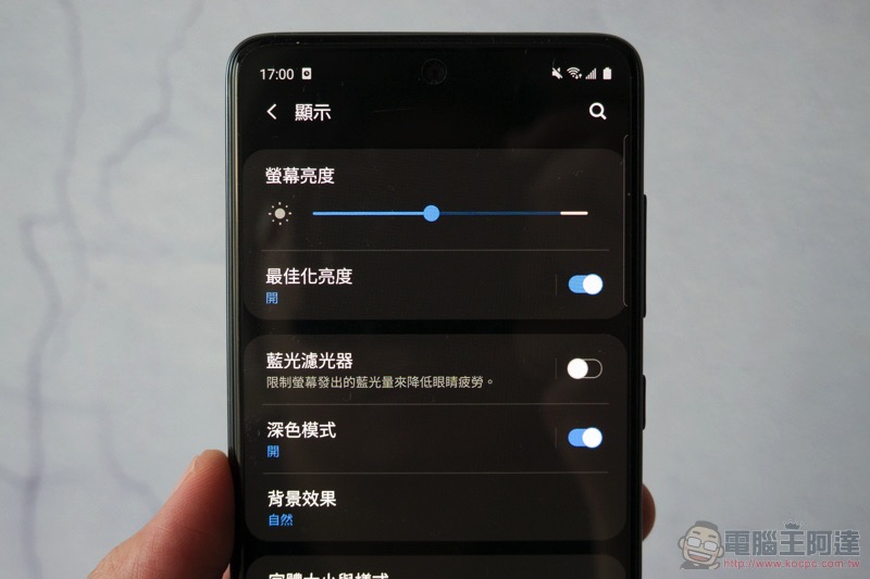 讓介面全面進入「暗黑模式」,有效利用 AMOLED 的特性讓顯示更為省電,低光使用更不刺眼:
