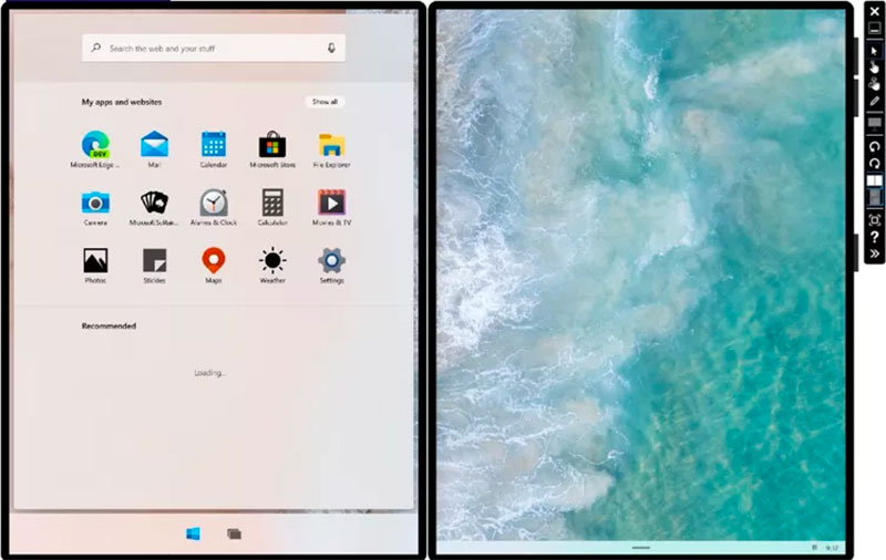 Microsoft 在其官方部落格上也展示了使用 Windows 10X 的模擬器樣貌,這個作業系統將會支援 Windows API,讓開發者能夠偵測轉軸的位置必且針對新設備改良其 32 位元與用於 Wimdows 平台(UWP)的應用。 Microsoft 還為雙螢幕佈局提出了新的 Web 標準,以期創造出提供出色體驗的新功能。
