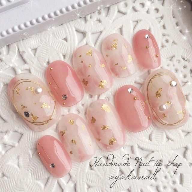 溫柔的粉色調,配上簡約小範圍的金色線條勾勒,或是搭配上小碎讚,華麗卻不會太張揚,或是可以選擇搭配小珍珠,看起來是不是更有典雅的氣息了呢~