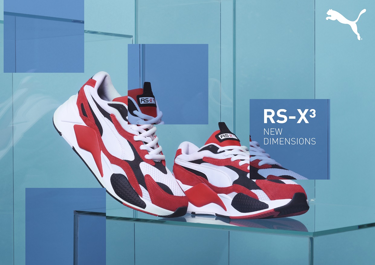 PUMA RS-X 系列鞋履汲取 80 年代復刻跑鞋科技精華,融合現代美學、科技元素加以重新打造,結合極致美學 (Extreme)、大膽誇張 (Exaggerated)、和混合重塑 (Remixed) 三大創作元素,以全新進化 DNA 透過設計美學闡述 PUMA RS 跑鞋科技對於流行文化的深遠影響。2020 全新 PUMA RS-X³ SUPER 超世代復刻潮履,以透氣網眼、皮革、及高級麂皮等多樣異材質拼接鞋面,經典 RS 跑鞋科技置入大底,為鞋款提升耐用機能,厚底設計拉長腿部線條比例,鞋面以充滿活力能量的多樣色彩拼玩重組。女孩獨鍾的薰衣紫新色以深淺漸層色塊堆疊,淺如薰衣草,深如靛藍紫,鞋帶更是散發細微紫色光澤,精緻細節為色彩前衛美學灌注爆發能量;此外 PUMA RS-X3 SUPER 也推出春節應景賀年紅、及凜冬黑新配色,以寬廣無垠的想像空間,賦予超世代潮流 STYLE 全新定義。