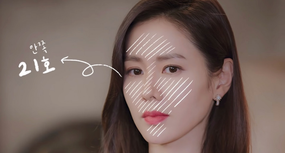 我們先用較貼近自己(孫藝珍)膚色的#21白皙色,拍開在臉蛋中間完成底妝。