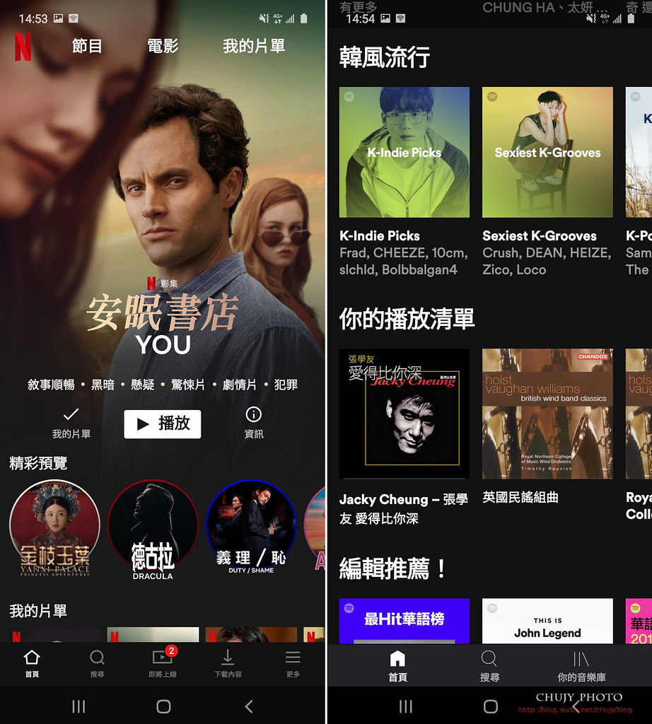 可看 Netflix,Spotify或是其他影音軟體等等。