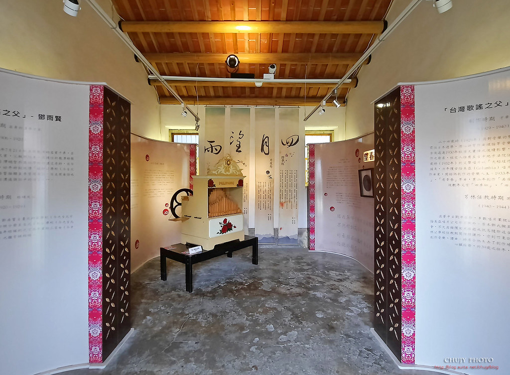 來到內部展間,看到台灣作曲家鄧雨賢紀念文物,當您聽到「四季紅」、「月夜愁」、「望春風」、「雨夜花」等台灣歌謠,應該有相當多朋友應該都聽過。