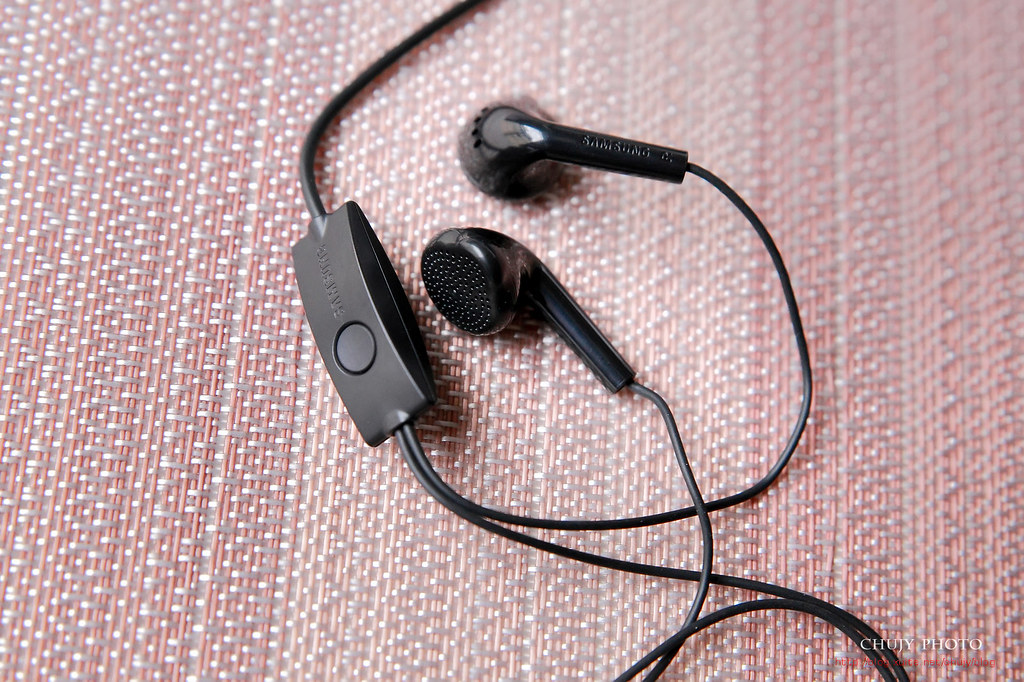 3.5mm耳機,上有 Samsung字樣。