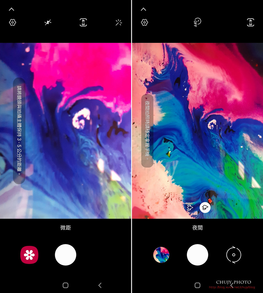 若選擇微距,要距離拍攝主體3-5公分,避免失焦。如果夜間光線不足,可善用夜間模式,會做疊圖後製,讓畫面更加清晰。