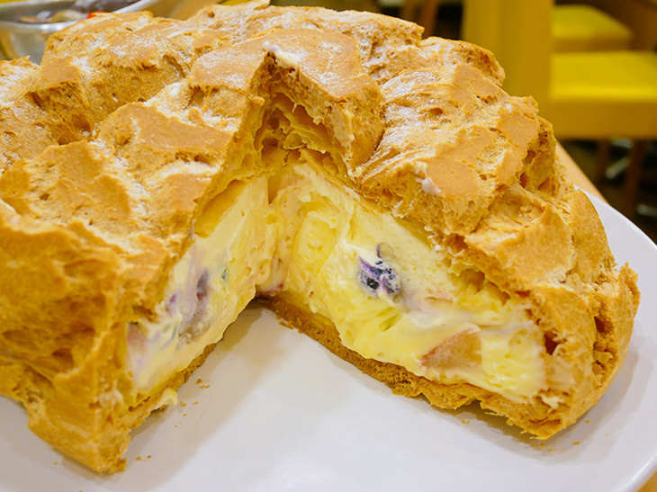 而且可別小看這個「軍艦泡芙」,他的內餡可不單單只有包奶油,還另外加入了七種水果,有草莓,藍莓,覆盆子,黑莓,芒果,葡萄和烤蘋果,可以化解奶油的甜度,就算想一直吃也不會感到甜膩!一份「軍艦泡芙」價格是6,000日圓(約台幣1630元),畢竟是手工製作又是特大尺寸,價格不會太美麗,不過也可以多找幾個人平分,一起分享~