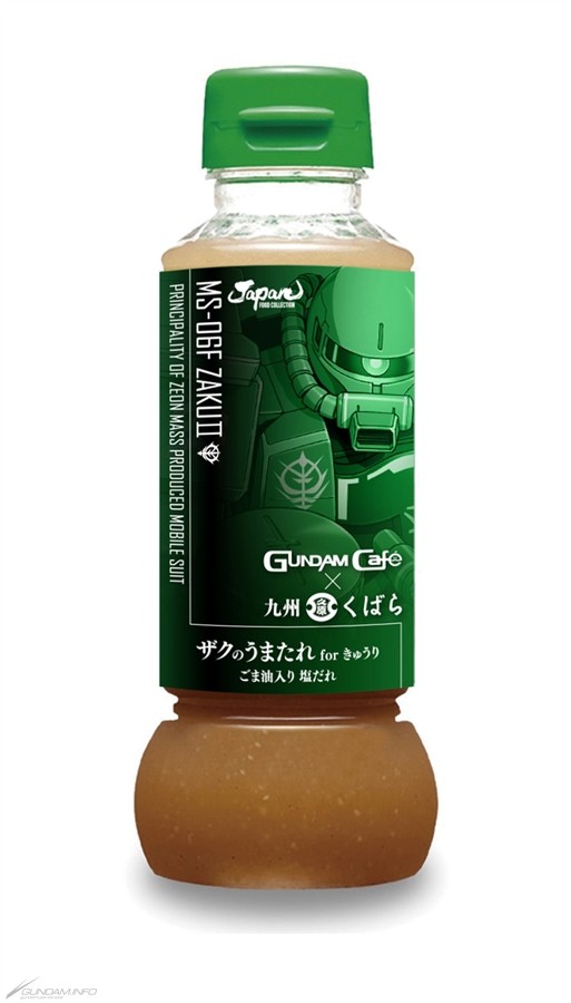 日本百年醬油品牌久原本家與鋼彈聯名推出一系列的沙拉沾醬,分別是蕃茄、小黃瓜與生菜專用沾醬。在鋼彈咖啡廳和鋼彈專賣店都可以買的到。
