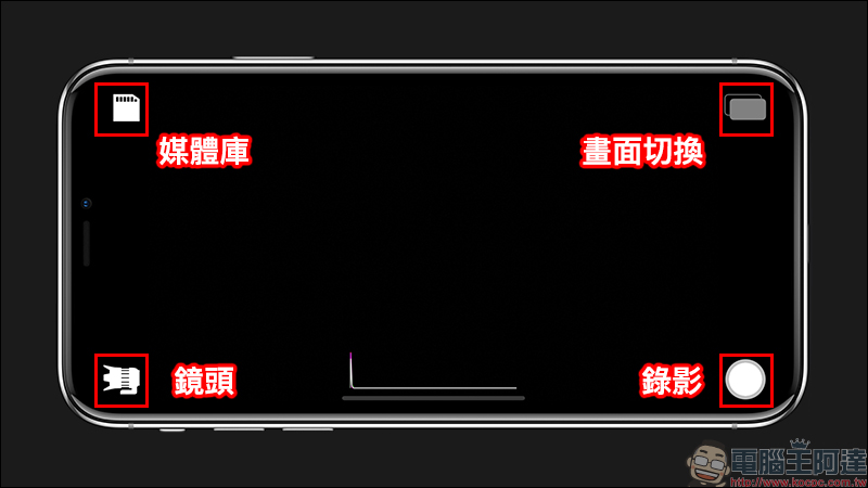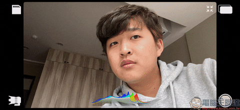 返回錄影主畫面後,點選畫面右上角可切換錄影時的顯示畫面,提供畫中畫、分開的、分屏三種顯示模式選擇: