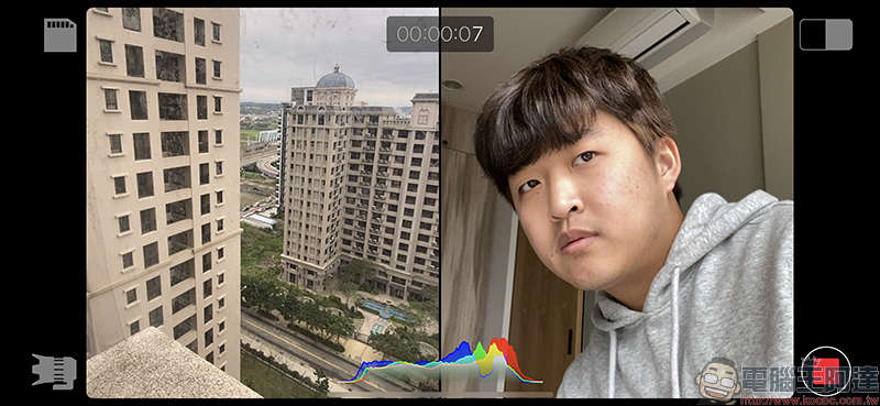 上述讓 iPhone 前後鏡頭同時錄製的方式,相當適合用於 Vlog 影片拍攝或採訪使用。另外,當使用者選擇主相機不同的兩顆鏡頭拍攝時,則可讓後續剪輯創作更有發揮空間。例如選擇超廣角鏡頭搭配長焦鏡頭同時錄製影片,後續在剪片時就能搭配出更豐富的畫面: