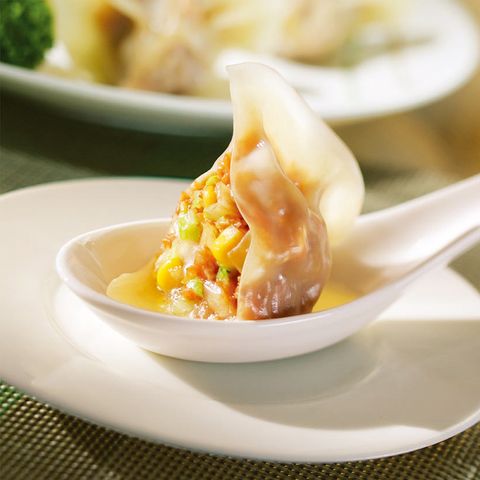 灣仔碼頭「玉米蔬菜豬肉」口味的水餃使用CAS認證整塊前腿豬肉,油花分布均勻、香甜細滑同時鮮嫩多汁,玉米堅持選用非基因改造玉米,每顆都飽滿圓亮。