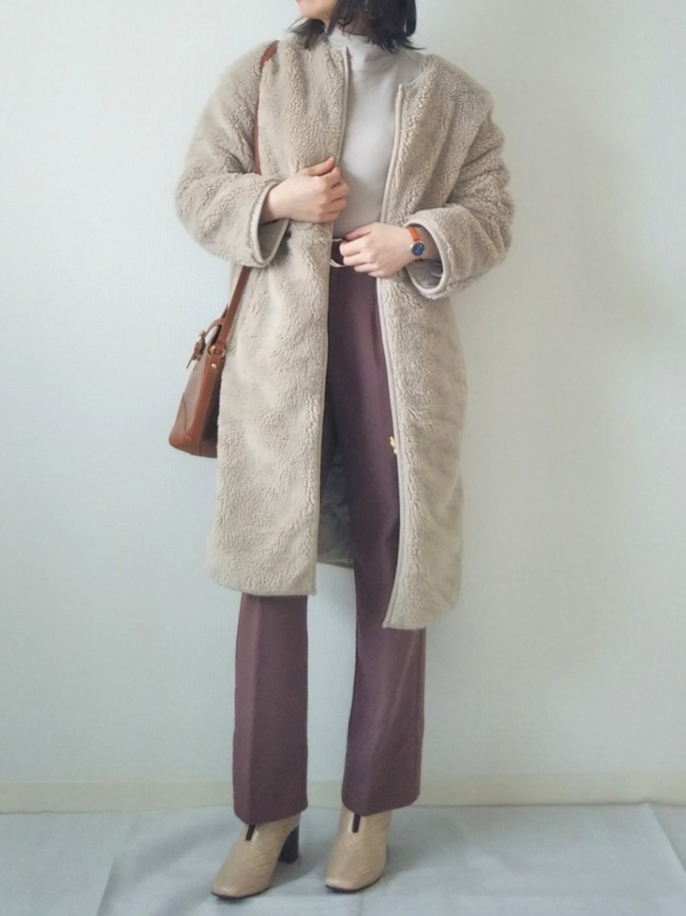 近年異軍突起的外套款非刷毛莫屬!夾克的款式容易顯得太過休閒,選擇長度到膝蓋的大衣款式就能讓毛呢也顯得優雅。米色或咖啡色都是能凸顯毛呢材質感的色彩,在寒冷天氣穿上既溫暖又能營造出惹人憐愛的印象。