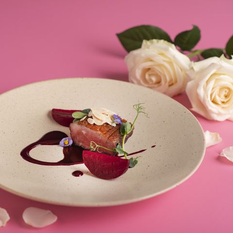 若想在情人節當天安排驚喜求婚,馬可波羅餐廳高樓環景的求婚桌可別錯過!義大利籍主廚法比歐(Fabio Strammiello) 精心設計經典六道式風味套餐,包含芝麻鮪魚墨魚脆片、花蟹番茄清湯、甜菜根鴨胸、波士頓龍蝦墨魚義大利麵,而主餐可依個人喜好選擇菲力牛排或伊比利帶骨豬排或加拿大黑鱈魚或香煎挪威鮭魚或波士頓龍蝦。餐後甜點荔枝香檳雪酪更發揮巧思以嬌紅鮮嫩的紅蘋果造型象徵「You Are the Apple of My Eye」。