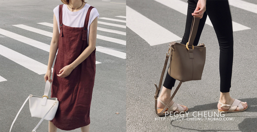 水桶包真的是不敗經典,無論是秋冬還是夏季,背它出門就是好看~小編自己很推薦這個拼接撞色水桶包,比起常見駝色和黑色,它似乎更適合夏天!無論是花點小洋裝還是素色T搭配起來都很好看,很適合文青女孩有沒有!