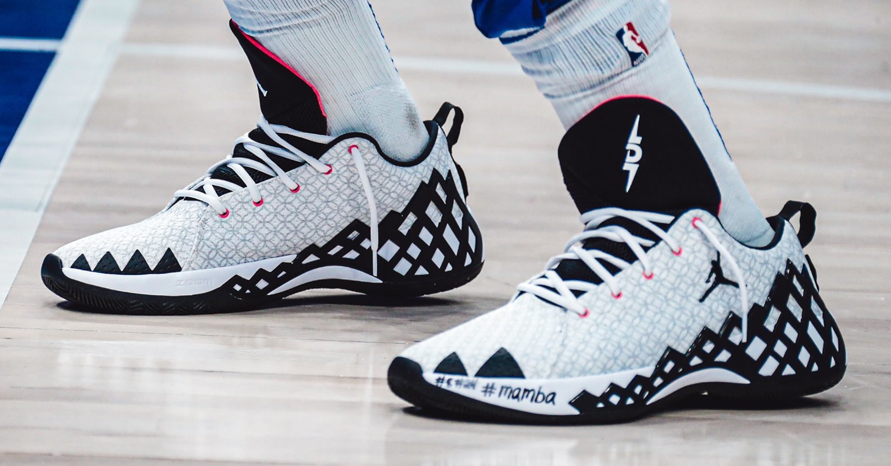 去年底 Luka Doncic 加盟 Jordan Brand 陣中,成為品牌在 NBA 聯盟中的新生代球員之一,雖然暫時還沒有專屬簽名鞋計畫,不過最近 Jordan Brand 提供給他的球鞋已經開始加上個人標誌。日前與太陽隊交手時 Luka Doncic 選擇穿 Jordan Jumpman Diamond Low 出賽,特別的是左腳鞋舌上有 ‘LD7’ 排列組成之圖案!而如果你有長期關注 Luka Doncic 的話應該曉得,其實這個圖案並非品牌方為他設計的,是為 Luka Doncic 本人所擁有,各位點進 Luka Doncic 官網首頁就能看到這個結合姓名縮寫跟球衣背號的圖案,另外網站上也有販售相關主題服飾,還有他在歐洲開辦的訓練營活動亦使用這個圖案;如今他從歐洲聯賽轉戰 NBA 後打出當家球星級表現,隨著新的代言合作也讓 ‘LD7’ 標誌出現在球鞋上。至於未來若如外界期待開啟簽名鞋系列,不曉得會不會沿用下去?