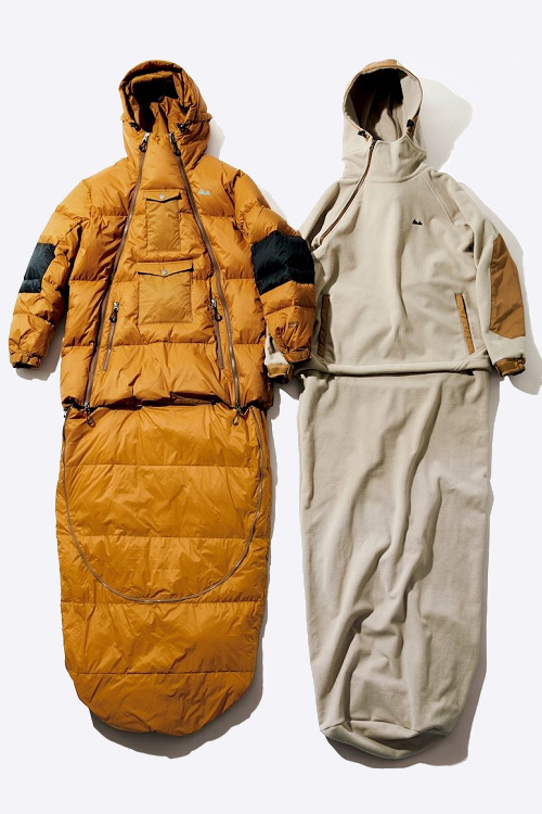 grn outdoor 是一個 2018 甫成立的新興戶外品牌,由日本的 grn 延伸出支線,相信有讀者會疑惑 grn 作品中本就有戶外元素,grn outdoor 又有何差別?編輯的區分方式是 grn 結合古著、戶外、流行、unisex 等元素,適合在都會穿搭或是參加戶外音樂祭使用,而 grn outdoor 是更走進大自然的露營或 SOTOASOBI 穿著,SOTOASOBI 是日本近來盛行僅專注於戶外的旅遊業者,從滑雪到露營甚至潛水都包辦,grn outdoor 成立宗旨就是在加強 SOTOASOBI 體驗故推出相對應的機能服裝。OFF to ON JACKET 的概念很簡單,將羽絨夾克和睡袋結合,兩者都是透過填充物來達到保效果,不過困難處在於如何將下身睡袋收納起來又不顯臃腫,OFF to ON JACKET 不突兀的將睡袋闔至後背(或另一款羊毛睡袋用捲的方式也不錯),另外 OFF to ON JACKET 除了採用抗水、防風尼龍之外,配上 800FP 羽絨讓你隨時身處溫暖被窩,拉開拉鍊即刻就寢,台灣 HeavyUse 有引進可以去試睡。