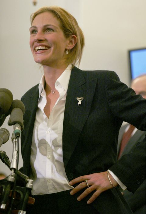 2001年她在改編自真實故事的電影《永不妥協》裡,飾演正直勇敢的單親媽媽,為生病的小居民大戰有錢有力的大公司,最精采的片段就是她面對質疑,一字不漏地唸出所有居民們的姓名、電話號碼、病症等。而這部叫好又叫座,狂賣2億5650萬美元的電影,不只讓茱莉亞羅勃茲登上片酬兩千萬美元的一線女明星排行榜,更拿下奧斯卡最佳女主角。