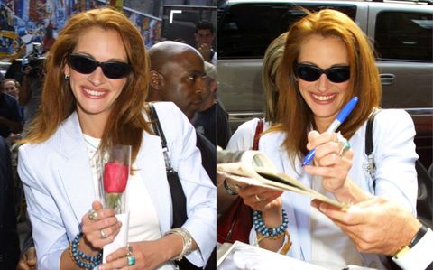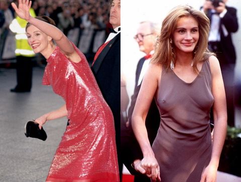 茱莉亞羅勃茲可以說是90年代最紅的女明星,無論是演戲或私下,她自然、不做作、有話直說,她大笑的時候會不小心太用力而額頭爆青筋,她生氣的時候也不會客氣怒視鏡頭,她大辣辣的個性也讓她忘記刮腋毛就走上紅毯,甚至還舉手跟影迷打招呼,讓攝影師們拍下她穿著紅禮服搭配許多腋毛的歷史畫面。
