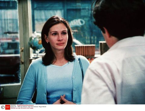尤其是電影最後,她穿著淺藍色針織衫,帶著夏卡爾的畫走入休葛蘭經營的書店,向休葛蘭說:「我只是一個女孩,站在一個男孩面前,要求他能夠愛她。」這個心碎又經典的畫面不只在影迷間廣為流傳,更讓茱莉亞羅勃茲成為大眾心中的女神。