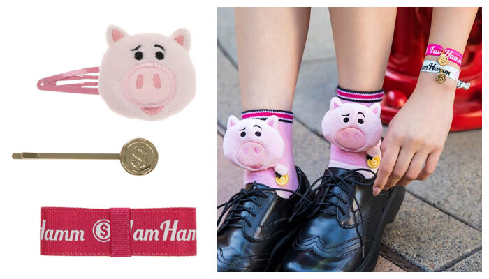 這次的主打角色是火腿豬,是玩具總動員裡的人氣角色!從棒球帽到衣服甚至襪子!一起把可愛的小豬撲滿穿在身上吧~