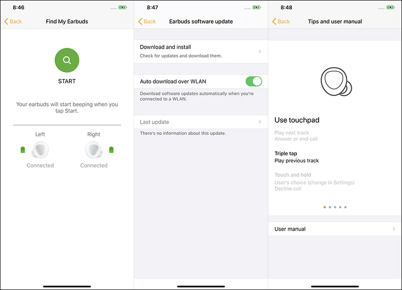 用戶也能藉由 App 直接控制耳機的等化器,提供一般(Normal)、低音增強(Bass boost)、柔和(Soft)、動感(Dynamic)、嘹亮(Clear)及高音增強(Treble boost)共五種模式選擇。