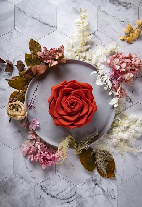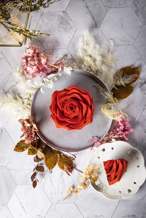 而這款綻開的火紅玫瑰蛋糕,也最適合熱戀中的情侶用來傾訴滿腔熾熱的愛意喔。