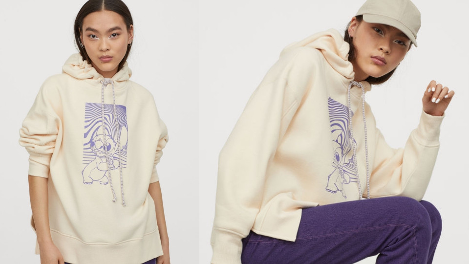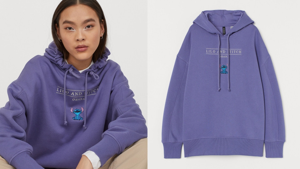 一共有紫色和奶油白色兩款,從顏色都充分展現了史迪奇的活潑單純以及星際太空的奇幻感,不只兼顧衣服的造型設計,在內裡也有舒適的刷毛,是一款兼具時髦與保暖的單品,喜愛史迪奇的朋友不要錯過百搭帽T。