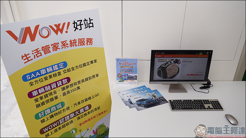 現場也提供電腦,能瀏覽 Wow!好站的各項服務資訊。若有 SAA 車輛鑑定、融資貸款、汽車精品配件、中古車換購需求,也能在這直接進行諮詢: