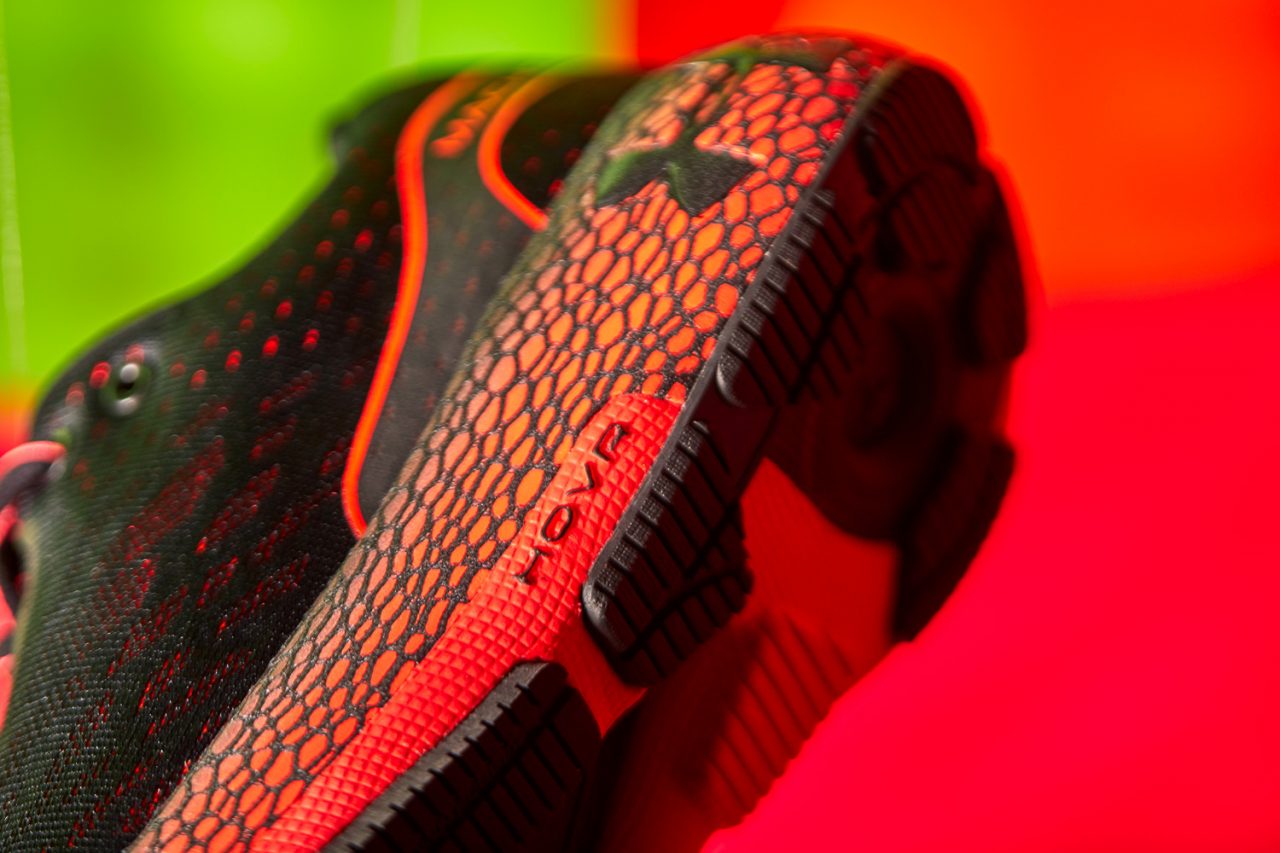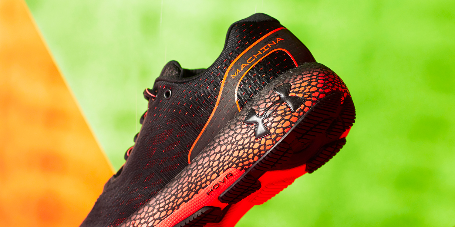 攤開 HOVR 系列跑鞋最新名單陣容,平常訓練日打算跑長距離時有 HOVR Infinite 2 能上陣,至於 HOVR Machina 則定位於長距離跑步競賽使用,對於有設定完賽目標的跑者來說,當通過起跑線之後無疑是分秒必爭,作為跑者一路上最親密的戰友,HOVR Machina 聚焦於緩衝、回饋、支撐推進三個面向,全掌 HOVR 中底比起另一款旗艦跑鞋 HOVR Infinite 用量要再多 20%,同時還解除外層封印,Under Armour 團隊找到一種精準比例,使 HOVR 科技周圍不需要覆蓋過多其餘的發泡材質,可以看到側面全都裸露在外,僅於底部設置支撐結構,如此一來讓吸震、回彈效果更完整釋放,新鞋不用熱機踩起來就軟彈有勁。