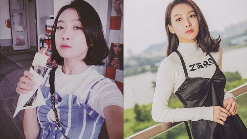 瘦下來之後穿搭屢屢成為焦點的宋茜,(左)一身藍白條紋的細肩帶上衣搭配基本的白色素T,真的很符合夏日氛圍;如果天氣轉涼了,另一套以皮革質料的細肩帶洋裝搭配高領長袖的造型(右),不僅很遮肉、保暖又不擁腫~