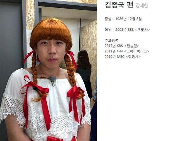 去年才加入RM大家庭的梁世燦,確實是因為金鐘國的推薦才能加入RM沒錯,改成金鐘國的粉絲好像有點合理(?)啦!但是照片(還是女裝扮相)就讓人笑到噴飯啊XD