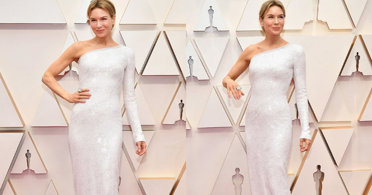 幾乎是一路從金球獎、美國演員工會獎、英國電影電視藝術學院獎等橫掃各大電影最佳女主角獎項的芮妮齊薇格,也被眾人視為本屆最有可能一舉奪下奧斯卡最佳女主角殊榮,身材早已不是當初演《BJ單身女》那樣有點圓嘟嘟的可愛模樣,透過運動及飲食調養,如今擁有過人S曲線身形的她,選擇一襲白色亮片斜肩合身長禮服,再加上她那迷人的聲音,性感、甜美兼具!