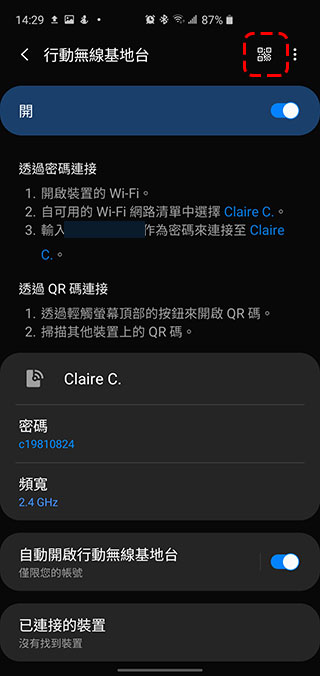如果是在手機上開了行動網路分享給朋友,密碼部分同樣可借助 QR Code 比照辦理,這個也不難!跟著我來試一試。